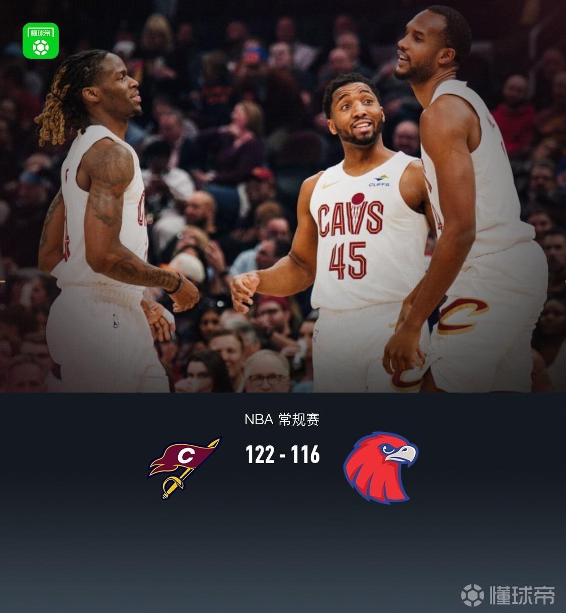 第四节骑士哈登拿下5分,老鹰亚历山大-沃克拿下10分,最终骑士122-116战胜老鹰