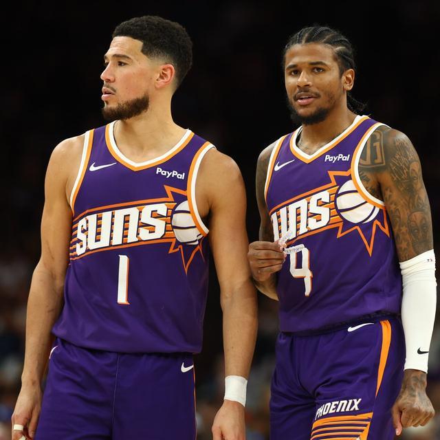 再看看太阳队这边,乔丹·古德温不仅拿下了19分和9个篮板,还在很长一段时间里承担起了死磕库里的防守重任,绝对是赢球的大功臣。德文·布克也是稳如磐石,虽然运动战12投仅5中,但他在罚球线上10罚全中,最终交出了20分、8次助攻和6个篮板的“准两双”成绩单。