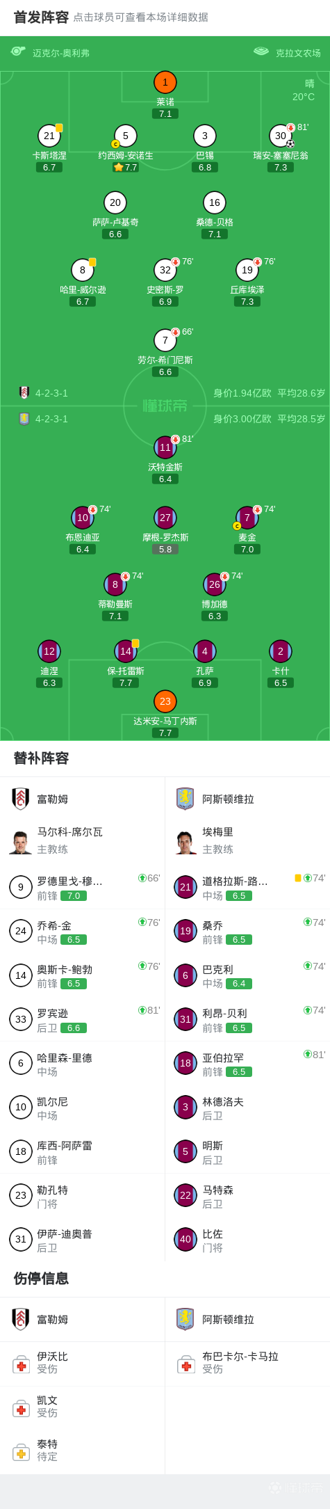 富勒姆VS阿斯顿维拉直播
